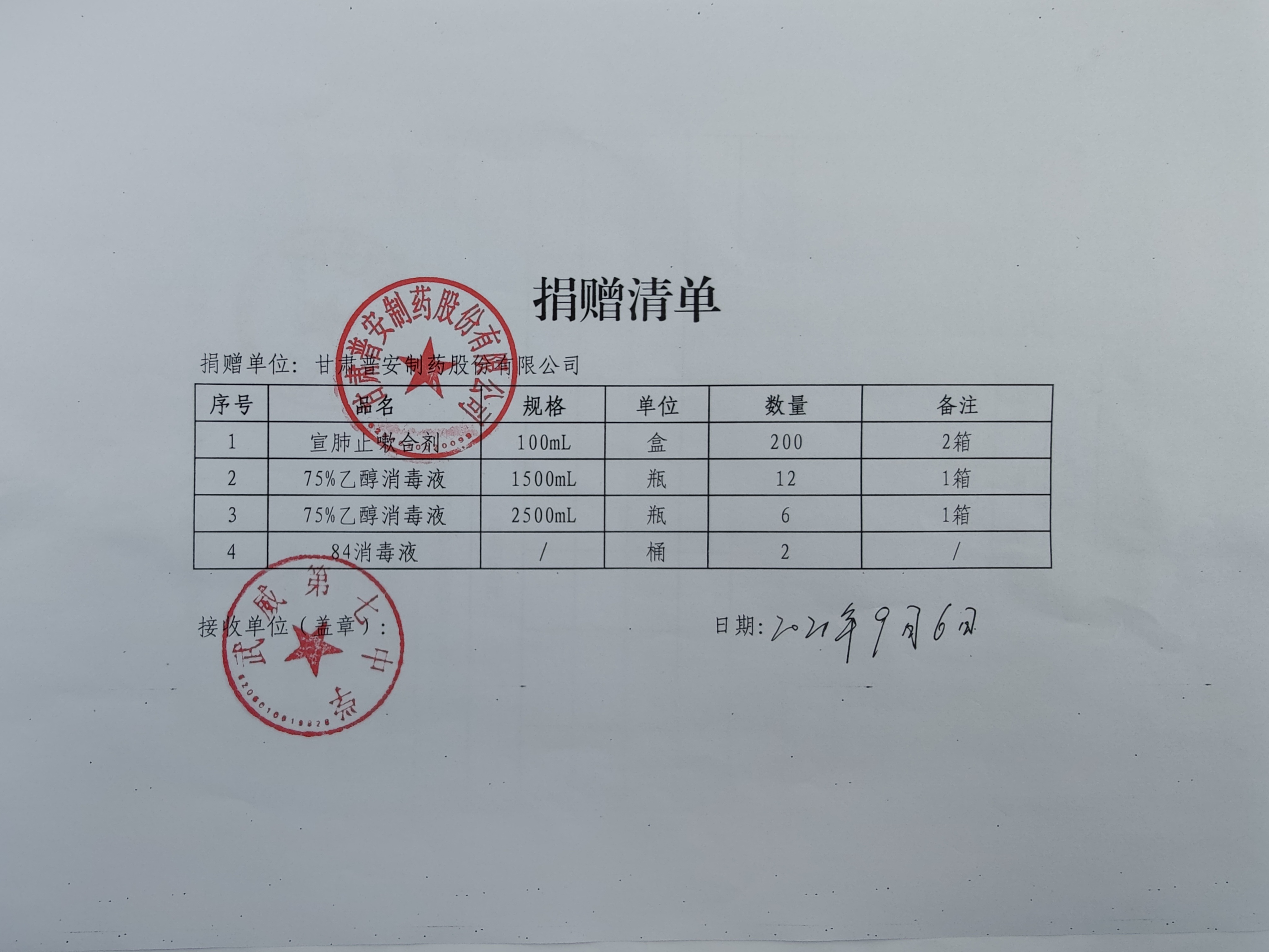 金秋九月,涼風(fēng)送爽,又是一年開學(xué)季。為進(jìn)一步助力疫情防控工作有效開展,弘揚(yáng)“普惠眾生、安康萬家”的企業(yè)理念,近日甘肅藥業(yè)集團(tuán)普安制藥(以下簡稱:普安制藥)向甘肅畜牧工程職業(yè)學(xué)院、武威第七中學(xué)捐贈宣肺止嗽合劑、乙醇消毒液、84消毒液等防疫物資,向涼州區(qū)黃羊?qū)嶒炐W(xué)捐贈了20套愛心體育包(含籃球、足球、排球、羽毛球、乒乓球等)和一批防疫物資(宣肺止嗽合劑、乙醇消毒液和84消毒液),用實際行動支援疫情防控,助力開學(xué)季。