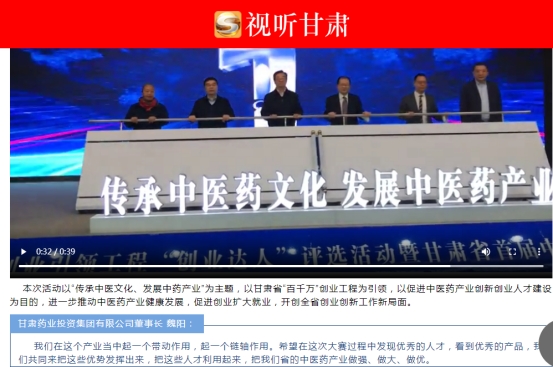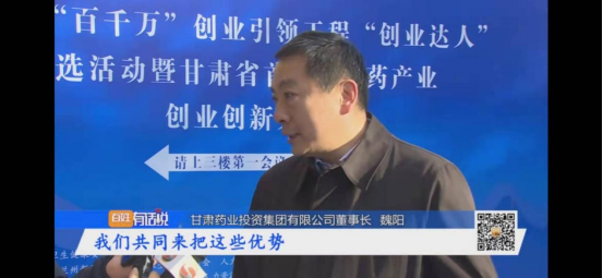 甘肅藥業(yè)投資集團魏陽董事長以特邀嘉賓身份出席此次中醫(yī)藥創(chuàng)業(yè)創(chuàng)新大賽開幕典禮,在觀展后被甘肅省廣播電視總臺、視聽甘肅、今日頭條、甘肅青春調頻等眾多媒體邀請,就關于此次中醫(yī)藥產業(yè)創(chuàng)業(yè)創(chuàng)新大賽做了相關的采訪。