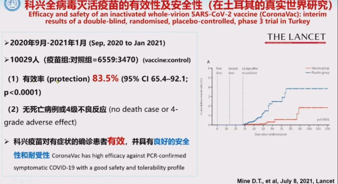 另一項(xiàng)研究發(fā)表在《柳葉刀》上,研究顯示,科興疫苗在土耳其的有效率達(dá)83.5%,同時(shí)沒(méi)有出現(xiàn)因?yàn)榻臃N疫苗而產(chǎn)生嚴(yán)重不良反應(yīng)和死亡的報(bào)告。鐘南山介紹,這項(xiàng)研究同樣表明科興疫苗對(duì)接種者有很好的保護(hù)效果,并且安全而具有耐受性!