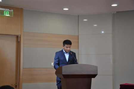 會(huì)議在莊嚴(yán)的國(guó)歌聲中拉開帷幕。公司班組長(zhǎng)及以上管理人員、工程技術(shù)人員、員工代表、營(yíng)銷中心和職能科室全體人員、受表彰人員參加了會(huì)議。