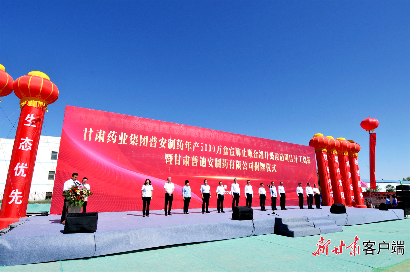新甘肅客戶端武威6月15日訊(新甘肅·甘肅日報記者 金奉乾)今天,甘肅藥業(yè)集團普安制藥年產(chǎn)5000萬盒宣肺止嗽合劑升級改造項目開工奠基暨甘肅普迪安制藥有限公司揭牌儀式在武威舉行,為武威市中醫(yī)藥產(chǎn)業(yè)高質(zhì)量發(fā)展增添新動能。