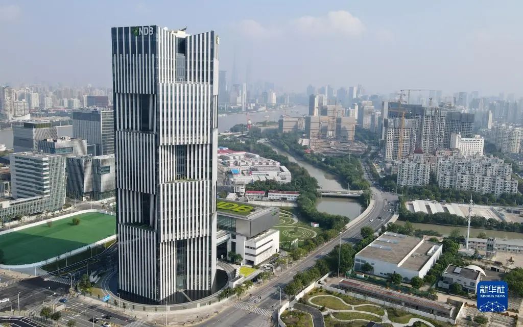 這是位于上海浦東新區(qū)世博園區(qū)的金磚國家新開發(fā)銀行總部大樓(2021年9月28日攝,無人機照片)。新華社記者 方喆 攝