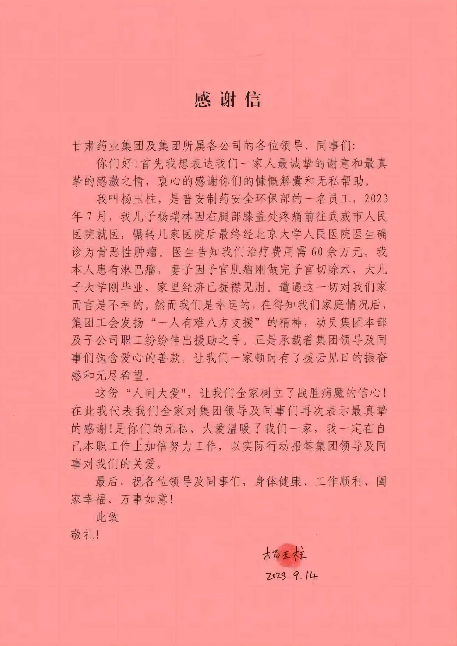 一方有難八方援,攜手共濟獻愛心-普安制藥舉辦“救助楊玉柱家屬”募捐金發(fā)放儀式