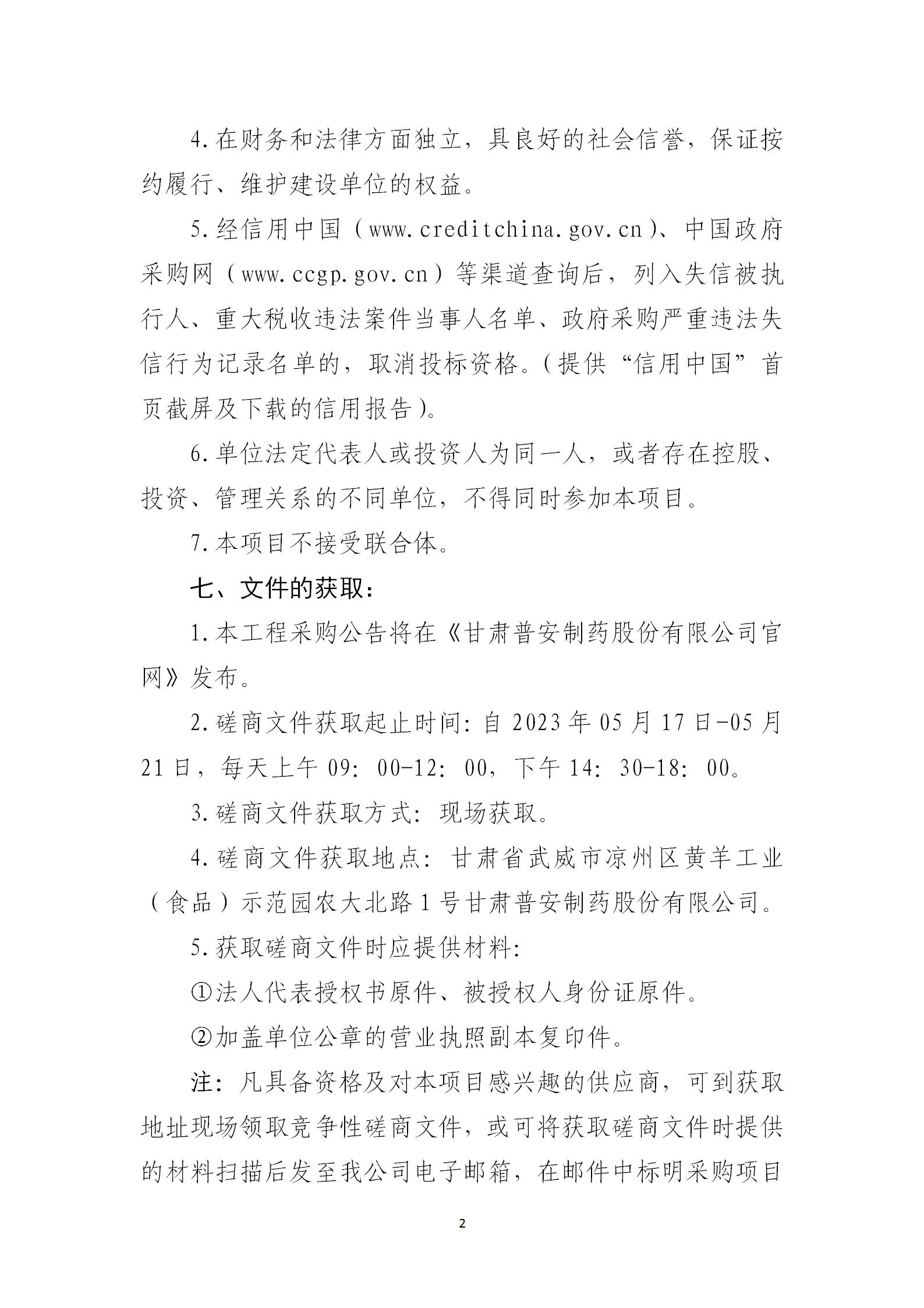 甘肅普安制藥股份有限公司變壓器增容工程競(jìng)爭(zhēng)性磋商公告