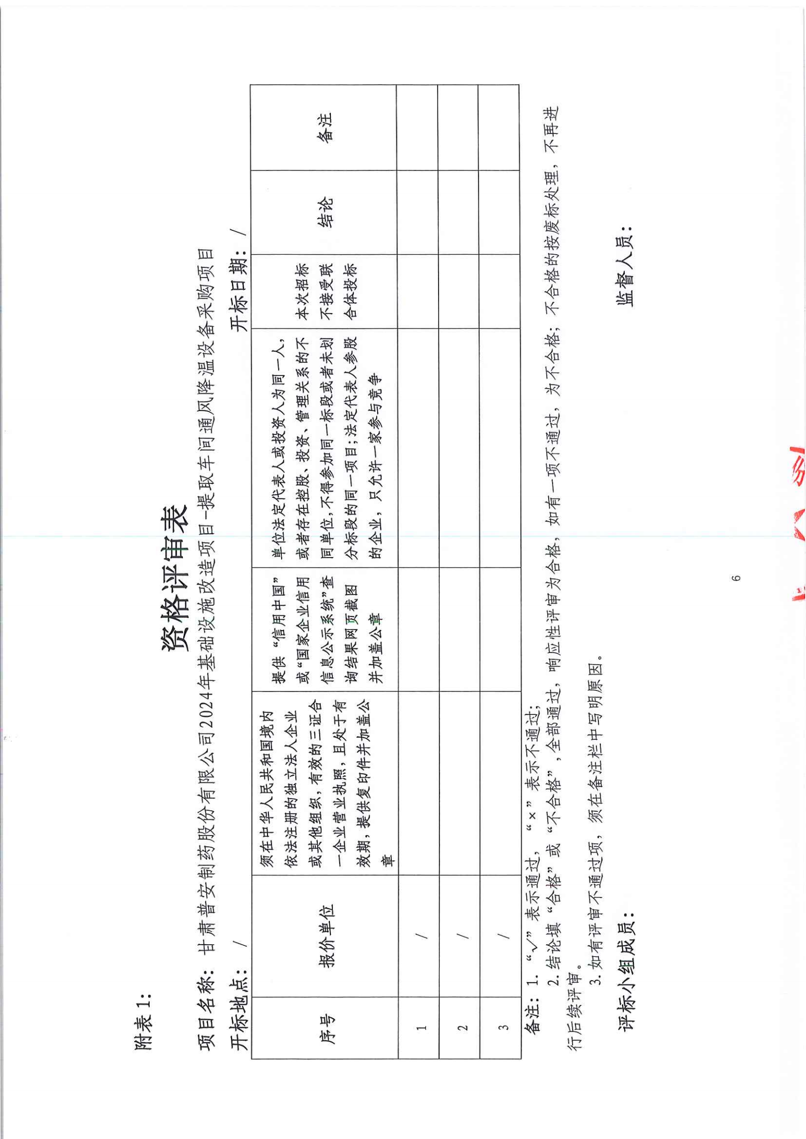 甘肅普安制藥股份有限公司2024年基礎(chǔ)設(shè)施改造項目-提取車間通風設(shè)備采購項目招標公告