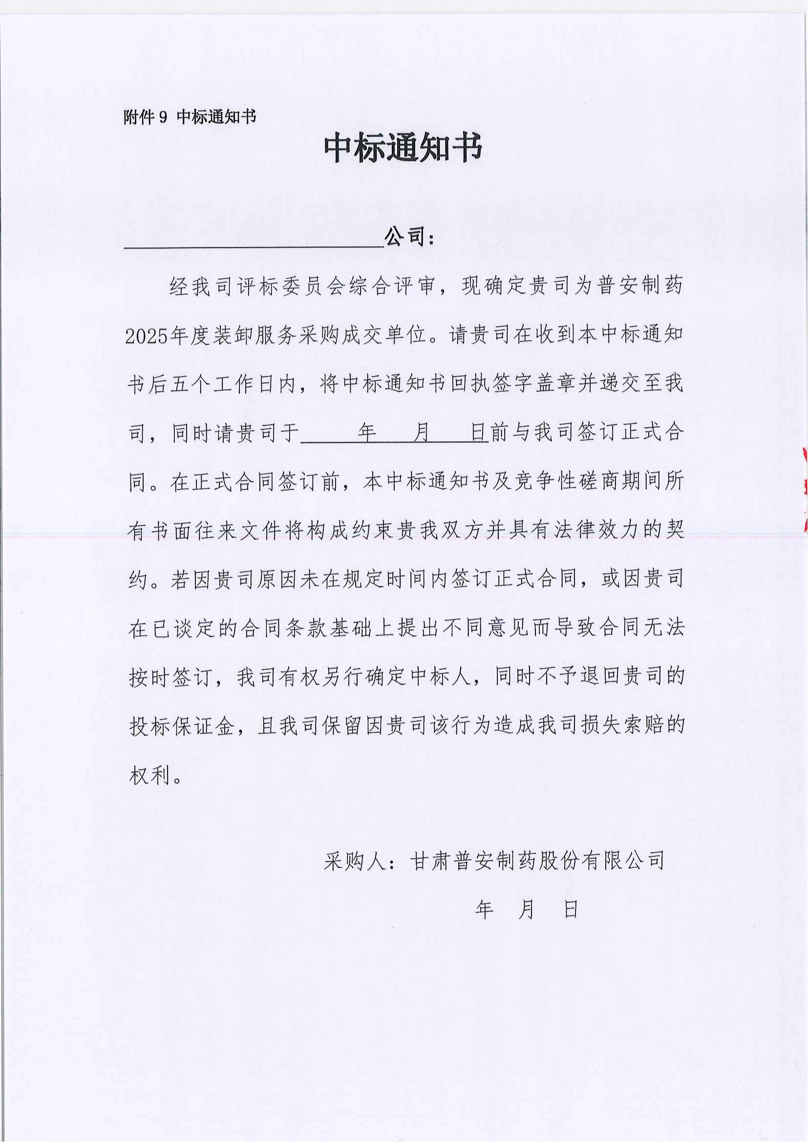 甘肅普安制藥股份有限公司裝卸服務(wù)單位招標(biāo)公告