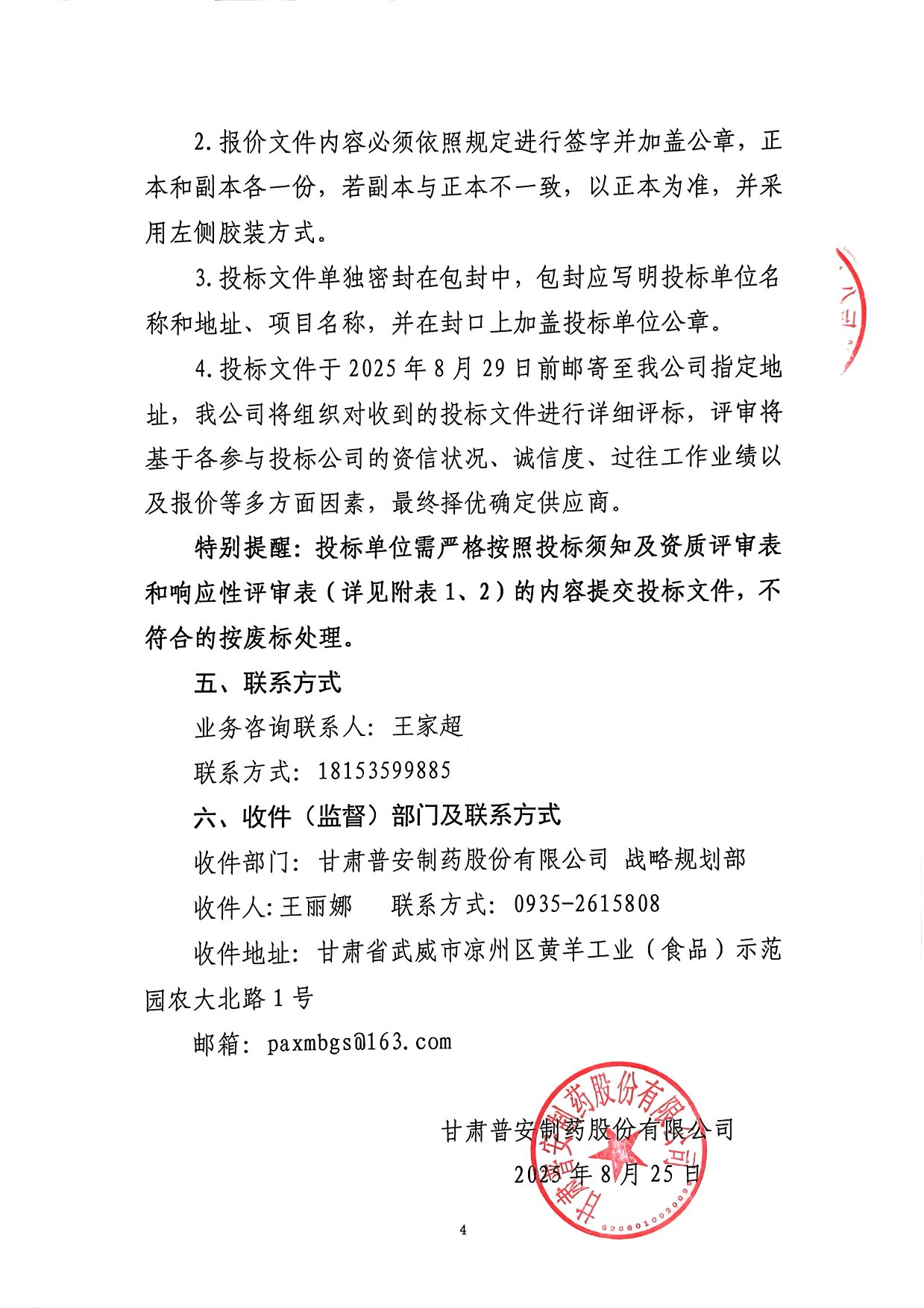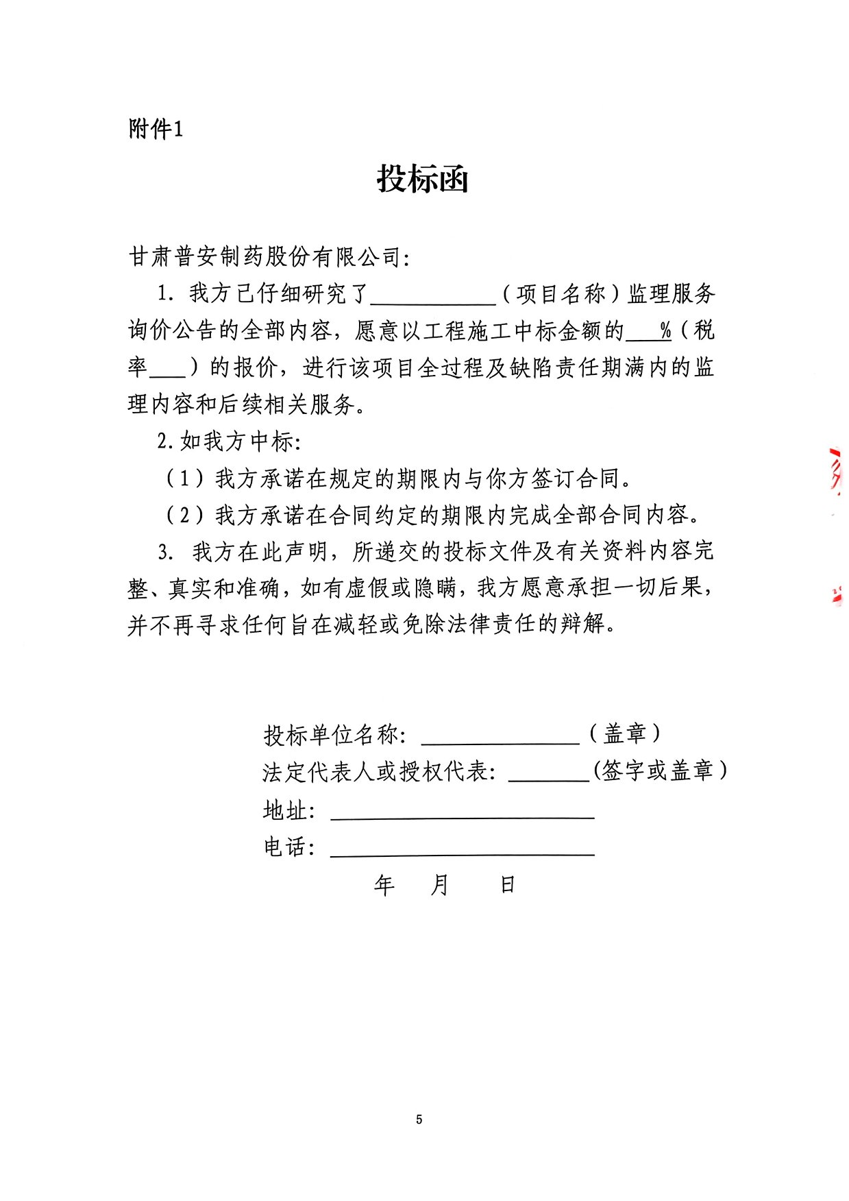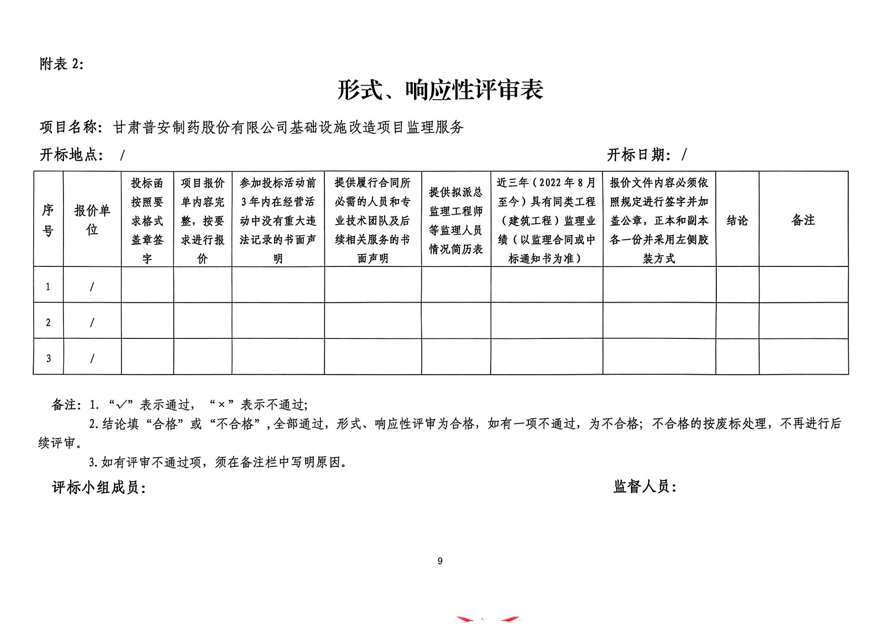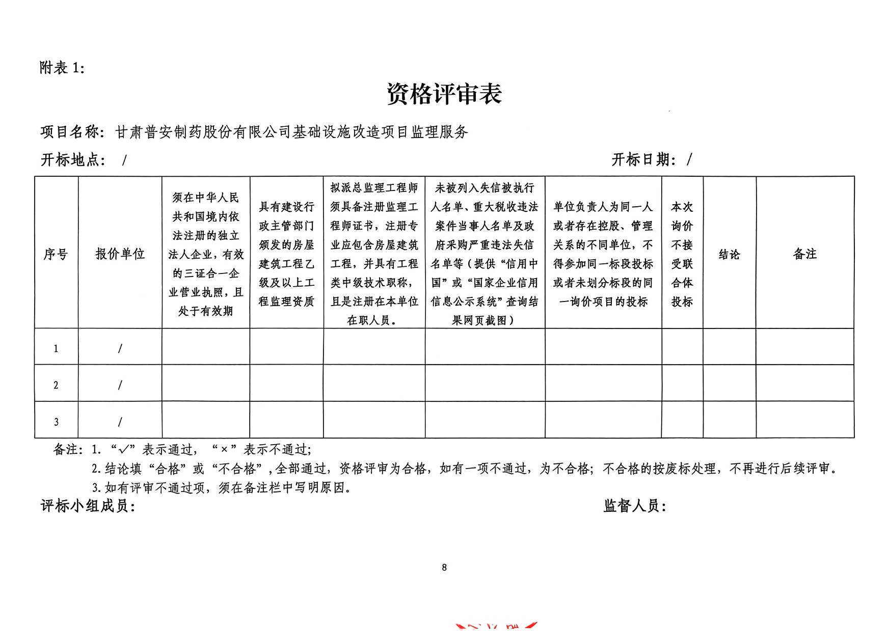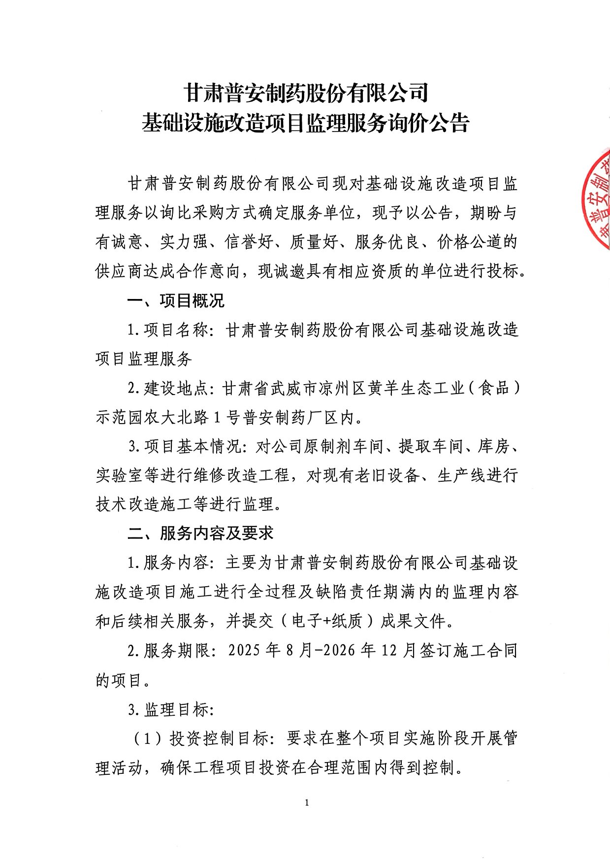 甘肅普安制藥股份有限公司 基礎(chǔ)設(shè)施改造項(xiàng)目監(jiān)理服務(wù)詢價(jià)公告