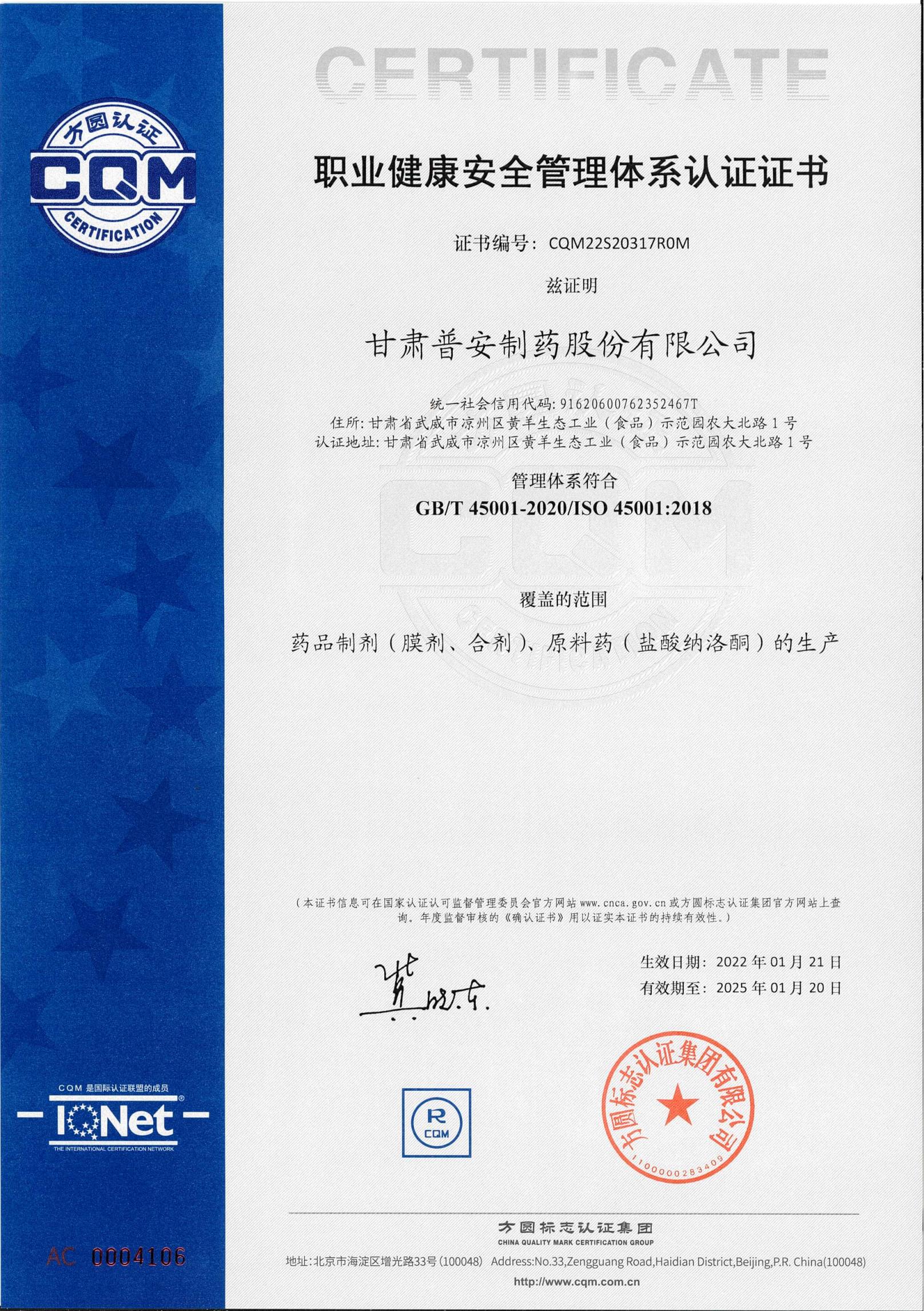 職業(yè)健康安全管理體系認(rèn)證證書(shū)