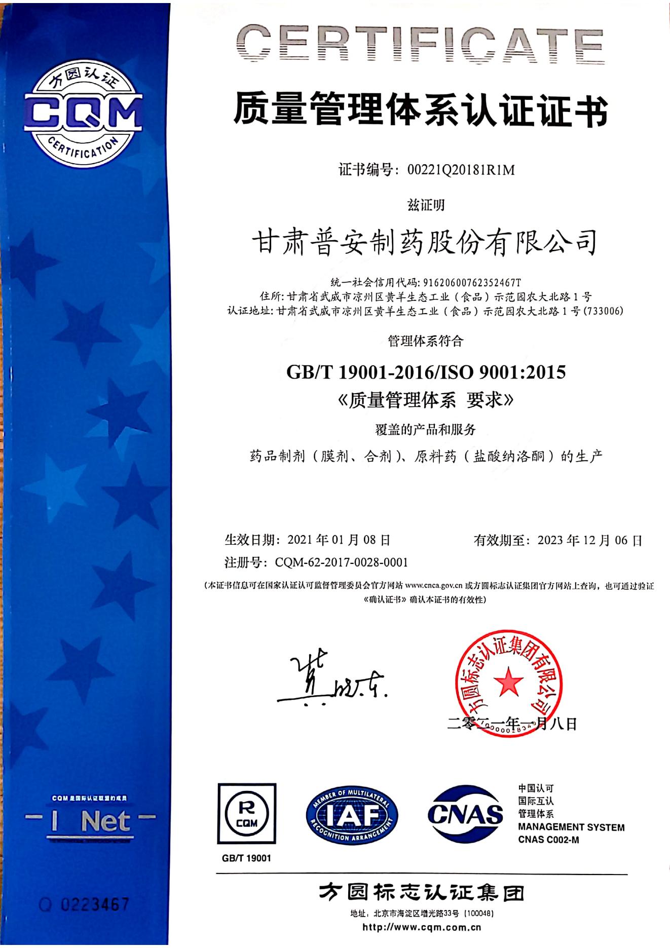 質(zhì)量管理體系認(rèn)證證書(shū)