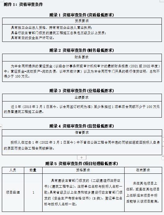 3.1本次招標(biāo)要求投標(biāo)人具有獨(dú)立企業(yè)法人資格,滿足本公告附件1要求的資格審查條件,并在人員、設(shè)備、資金等方面具備相應(yīng)的能力。
