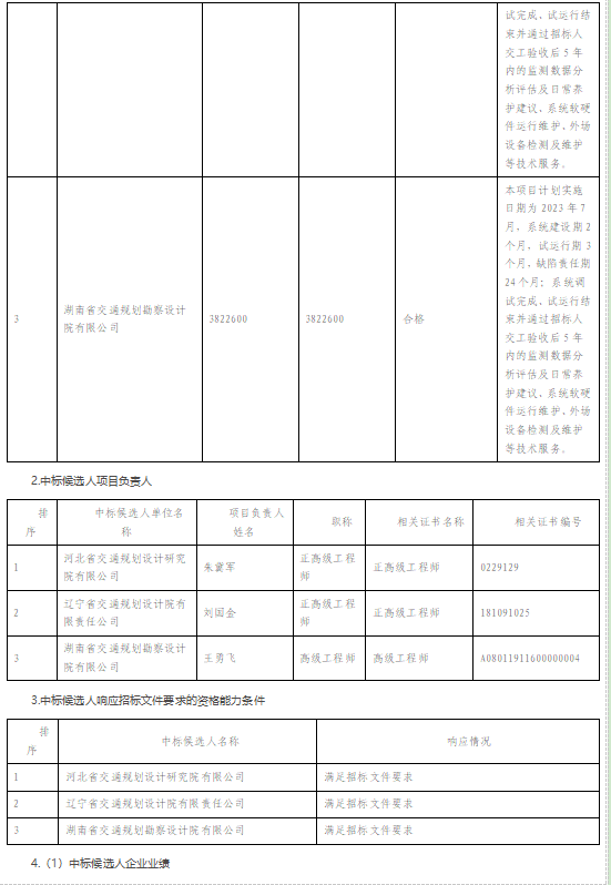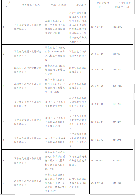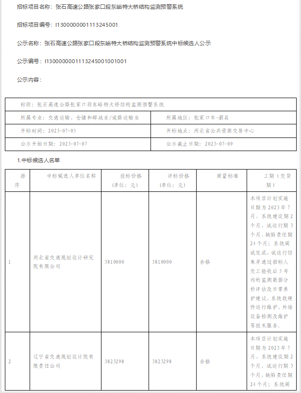 張石高速公路張家口段東峪特大橋結構監(jiān)測預警系統(tǒng)中標候選人公示